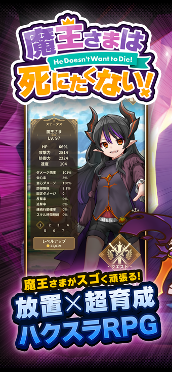 ハクスラRPG 魔王さまは死にたくないやりこみ放置ゲーム هي لعبة RPG غير نشطة تأسر اللاعبين في عالم خيالي نابض بالحياة. تقع أحداثها في خلفية من السماء الزرقاء الهادئة والأشجار المتلألئة، حيث يتولى اللاعبون دور سيد الشياطين الذي تتعطل حياته السلمية بسبب غزو من عالم آخر. تجمع اللعبة بين السرد الجذاب وطريقة اللعب الاستراتيجية، مما يسمح للاعبين باستكشاف مهام وتحديات متنوعة أثناء إدارة الموارد والقدرات.